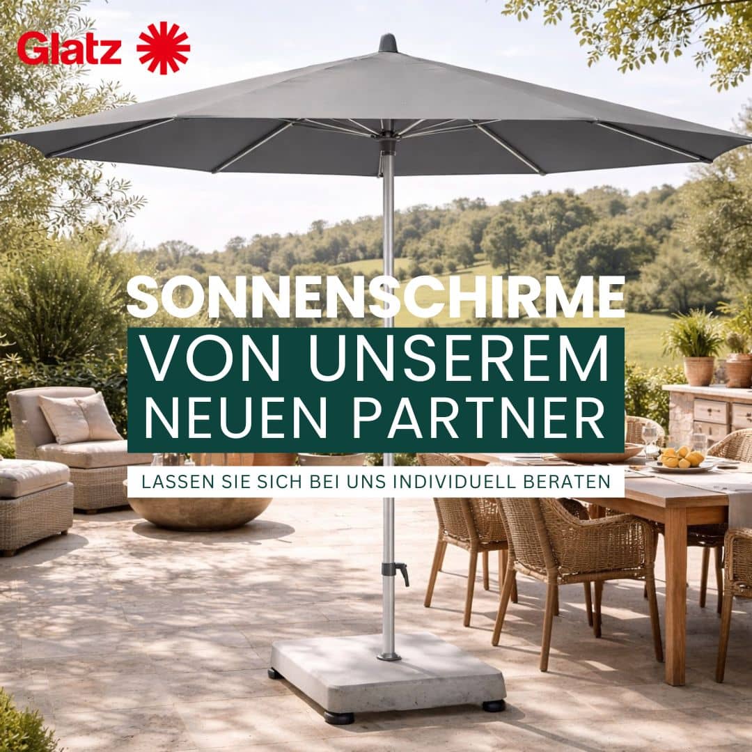 Wenn es um erstklassigen Sonnenschutz im Garten oder auf der Terrasse geht, setzen wir auf Qualität, Innovation und Design. Und genau deshalb freuen wir uns, mit Glatz einen so erfahrenen und zuverlässigen Partner an unserer Seite zu haben. Das traditionsreiche Schweizer Unternehmen steht seit vielen Jahren für langlebige Materialien, durchdachte Technik und stilvolle Designs, die jeden Außenbereich aufwerten.